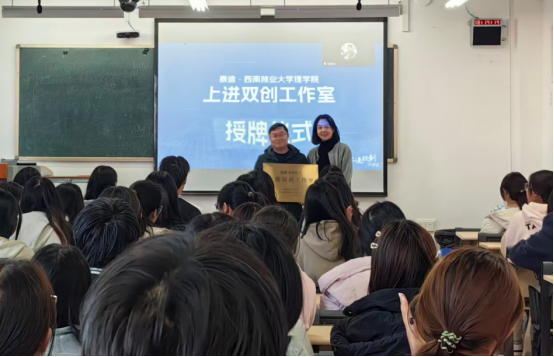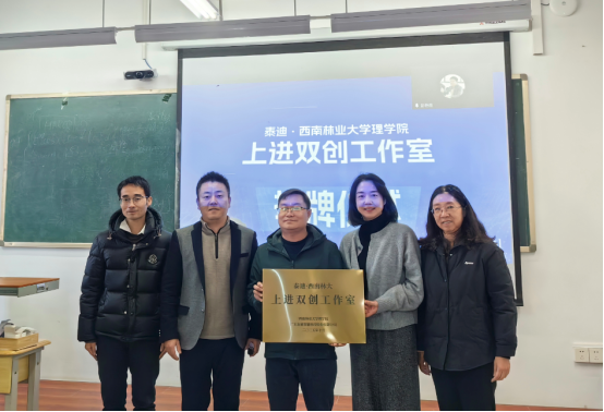 随后,在与会嘉宾的见证下,西南林业大学理学院书记杨恬与泰迪智能科技昆明分公司院校总监查良红共同为“泰迪·西南林大上进双创工作室”揭牌,现场响起了热烈的掌声。